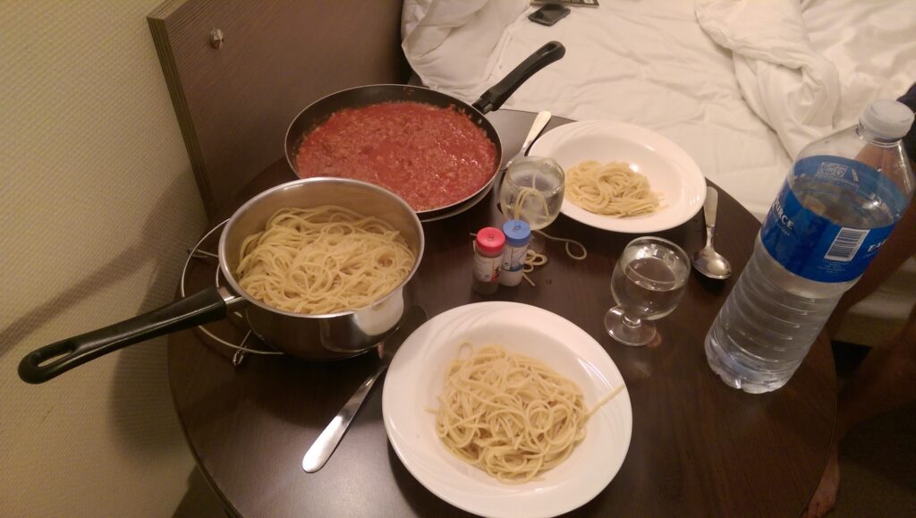In die Berge: Das war schön! Auch wenn ich es zu dem Zeitpunkt doof fand, dass wir uns von der Küste entfernen. Da haben wir abends in einem Restaurant jeweils ein Mehrgängemenü verspeist. Irgendwie Gulasch mit Oliven und Spätzle/Gnocchi!? + Salatbuffet, Käseplatte, Dessert (Kokoseis mit beeriger Soße) und echt französischen Wein! Danach waren wir so voll (auch ein bisschen vom Wein), dass es sehr anstregend war, die Treppe zu unserem Zimmern hinaufzugehen. 😉