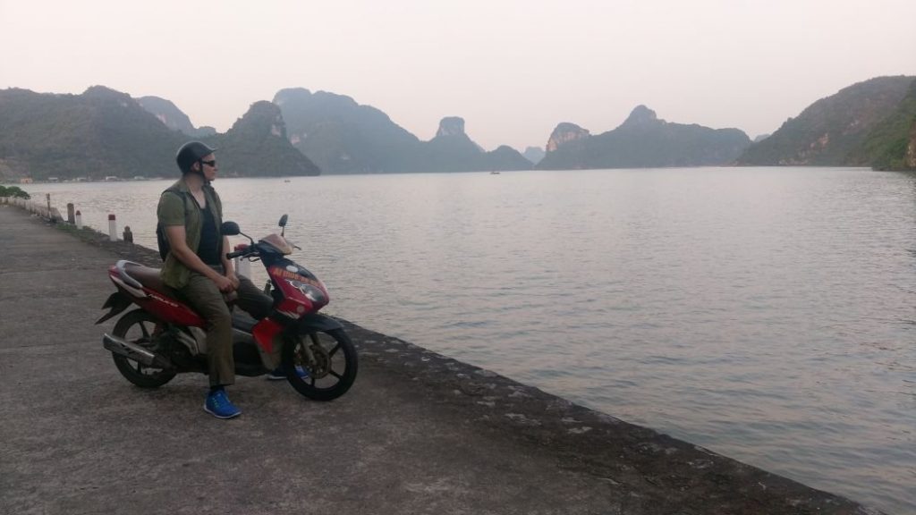 Als eine der bekanntesten Sehenswürdigkeiten gilt die Halong Bucht. Der Tourist fährt dazu nach Halong und bucht eine Schifffahrt. Wir wollten es etwas exotischer und sind daher nach Cat Ba, einer Insel, die ebenfalls an die Bucht angrenzt, gefahren. Etwa eine halbe Tagesfahrt, u.a. mit Fähre. Wir sollten im Hostel ab 06.40 auf den Bus warten – er kam dann um 09.15.. Die Fahrt an sich aber war ok und vor Ort hatten wir auch schnell ein Hotel gefunden. Es ist gegen Mittag, der Besuch der Bucht lohnt an diesem Tag nicht mehr. Also noch schnell was essen, die Reise für den nächsten Tag buchen und dann Scooter leihen und über die Insel fahren. Unterwegs haben uns die überaus freundlichen Vietnamesen gut versorgt:-)