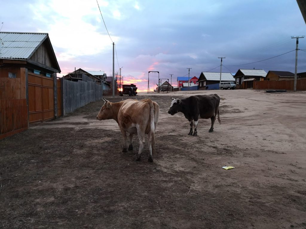 Uns hat besonders der Ort Kushnir auf der Insel Olchon gefallen. Der Ort ist irgendwie magisch. Es wirkt, wie in einer Westernstadt. Keine asphaltierten Straßen, nur Staub. Holzhütten. Einzelne Hunde streunen rum. Aber halt tierisch kalt. Dazu eine der schönsten Aussichten überhaupt. Wenn zur richtigen Zeit am Nachmittag der Himmel zu zieht, taucht es die Stadt in ein beeindruckendes Farbenmeer. Genug der Worte, lasset die Bilder folgen: