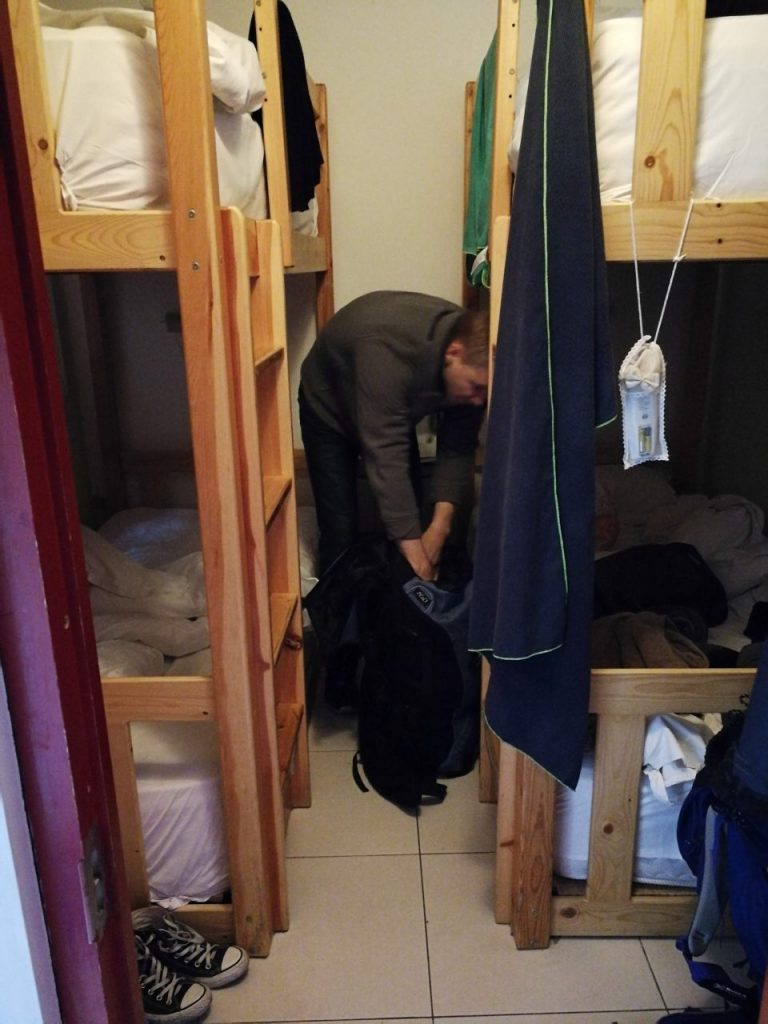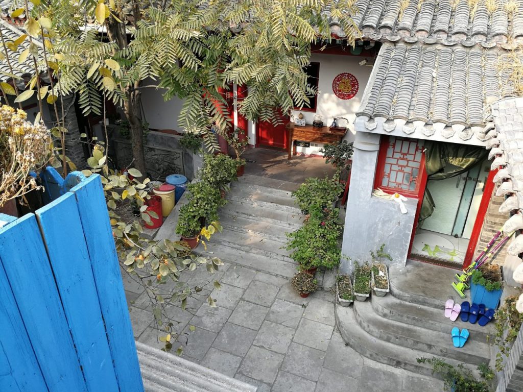 Beijing hat die klassische Ringstruktur, wie zB auch Köln. Im inneren Kreis ist die Innenstadt, die in vielen Bereichen „alt“ geblieben ist. Die kleinen Gassen werden „Hutong“ genannt und spiegeln das alte China wieder. Hinter den nicht einsehbaren Mauern tun sich die Anwesen auf. Dabei ist alles eher klein. Platz in Beijing ist knapp und entsprechend teuer. Chinesen sind es gewohnt, auf kleinem Raum zu leben. Das erleben wir auch in unserem ersten Hostelzimmer (Die Betten stehen direkt an der Wand, das Bild ist von der Tür aus aufgenommen, also quasi der gesamte Raum):
