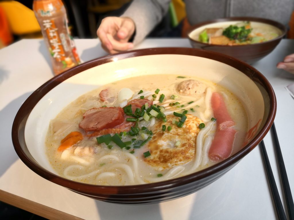 Essen ist schwierig. Niemand spricht Englisch. Wir werden immer angestarrt. Dann finden wir ein Gebäude, wo überall frisches Gemüse und Fleisch liegt. Man stellt sich das selber zusammen und dann wird das gekocht. Hab direkt rumprobiert. Manches war gut, anderes nicht. Leider war es direkt auch sehr scharf. Wir sind aber satt geworden.