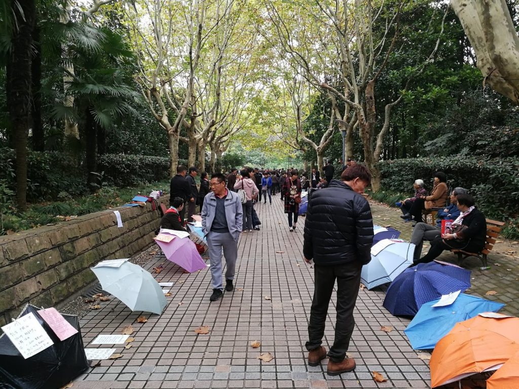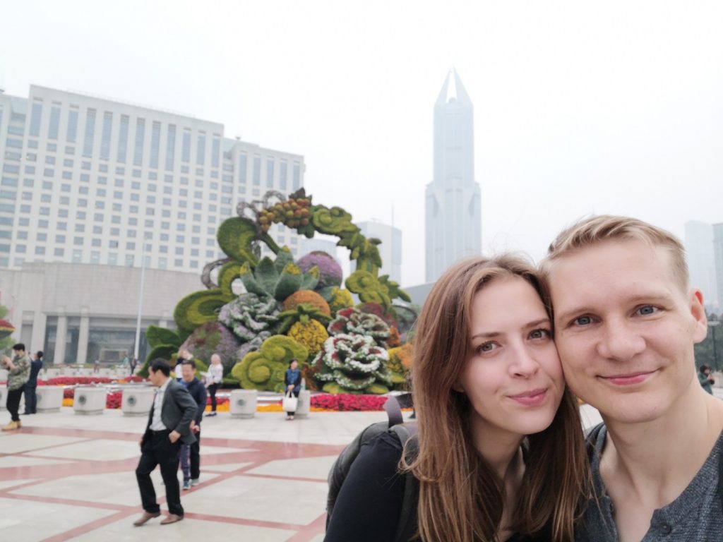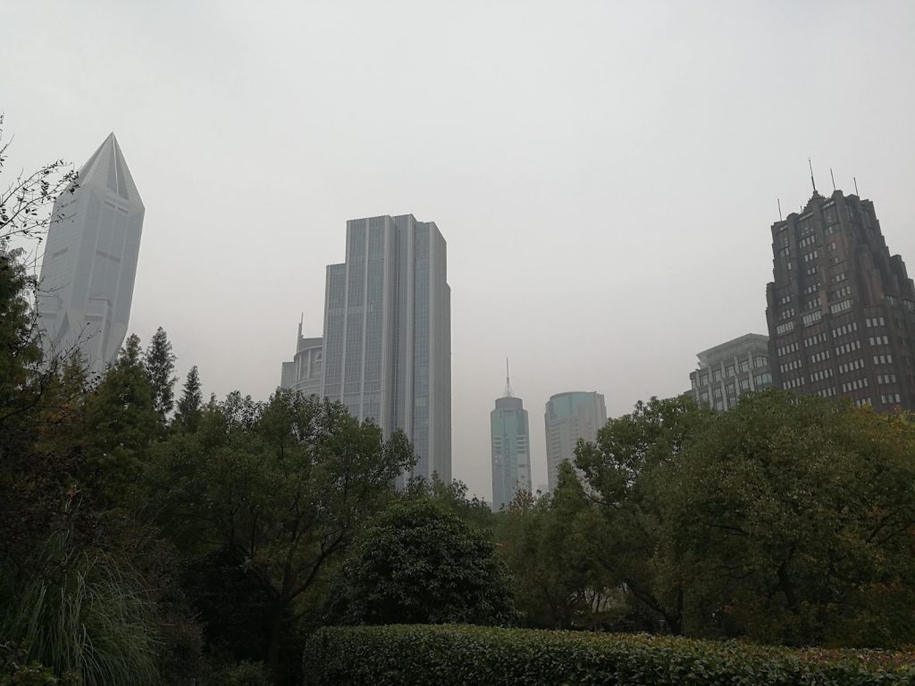 Gestartet sind wir am People’s Square. Alles grün und schön. Zwischen den Bäumen gucken die Wolkenkratzer hervor. Ein bisschen wie im Central Park in New York.