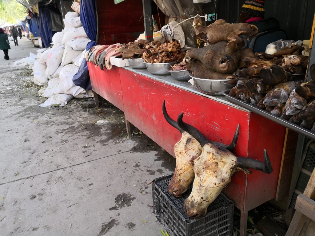 Verrückt. Hier wird nicht geheizt. In Kangding auch schon nicht. In den Wohnungen ist es schweinekalt. Wir sitzen drinnen, mit allem was wir haben, plus Mütze und Schal. Und frieren. Immerhin, die Betten haben Heizdecken, d.h. solange man mittig liegt, kommt Wärme von unten.