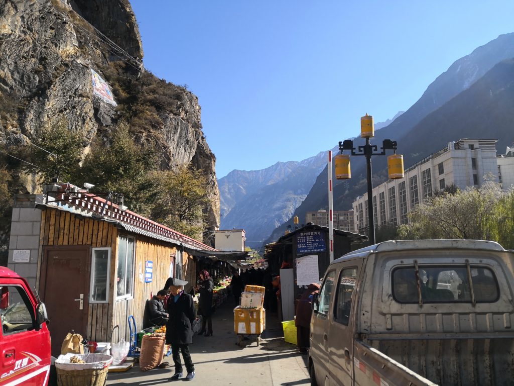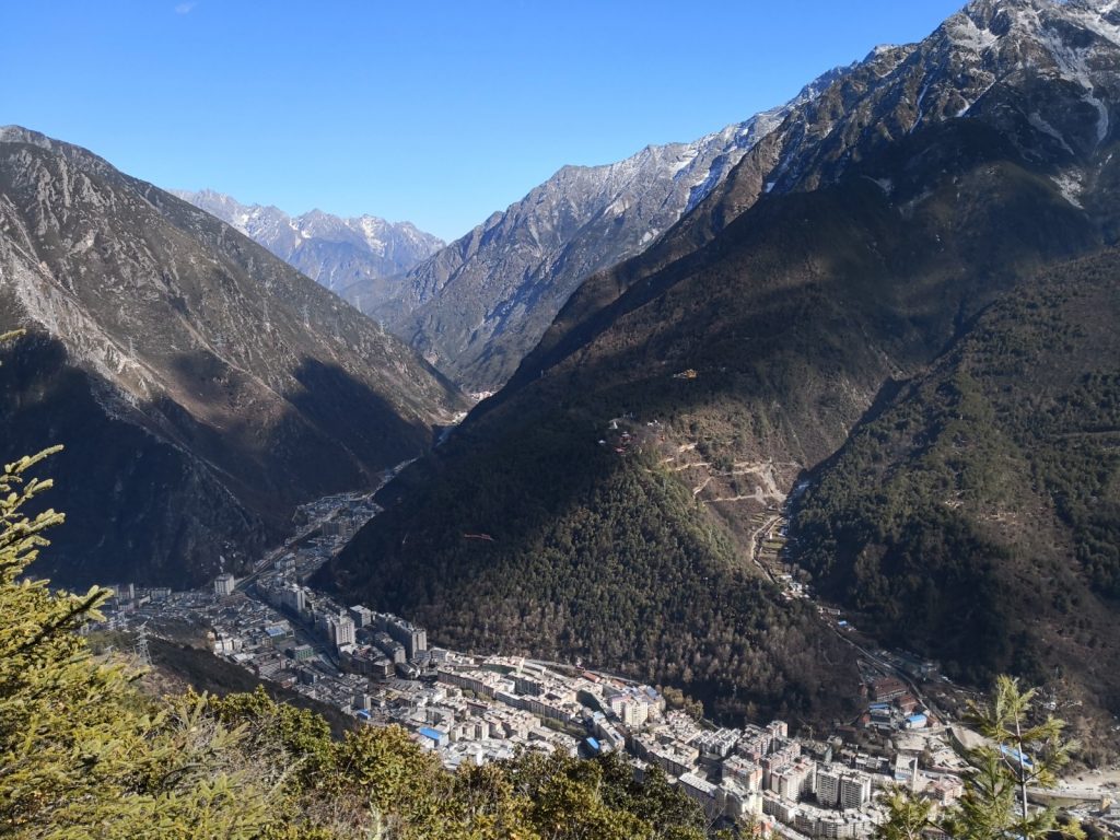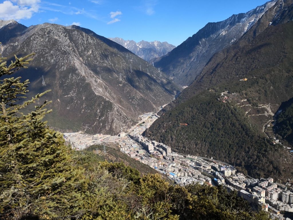 In 9 Stunden kann man von Chengdu Richtung Westen Kangding erreichen. Da ist man dann auf etwa 2.500m Höhe in einem erstaunlich großen Ort.
