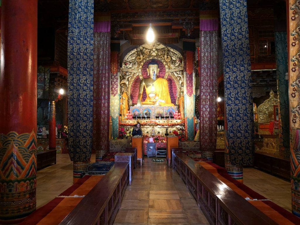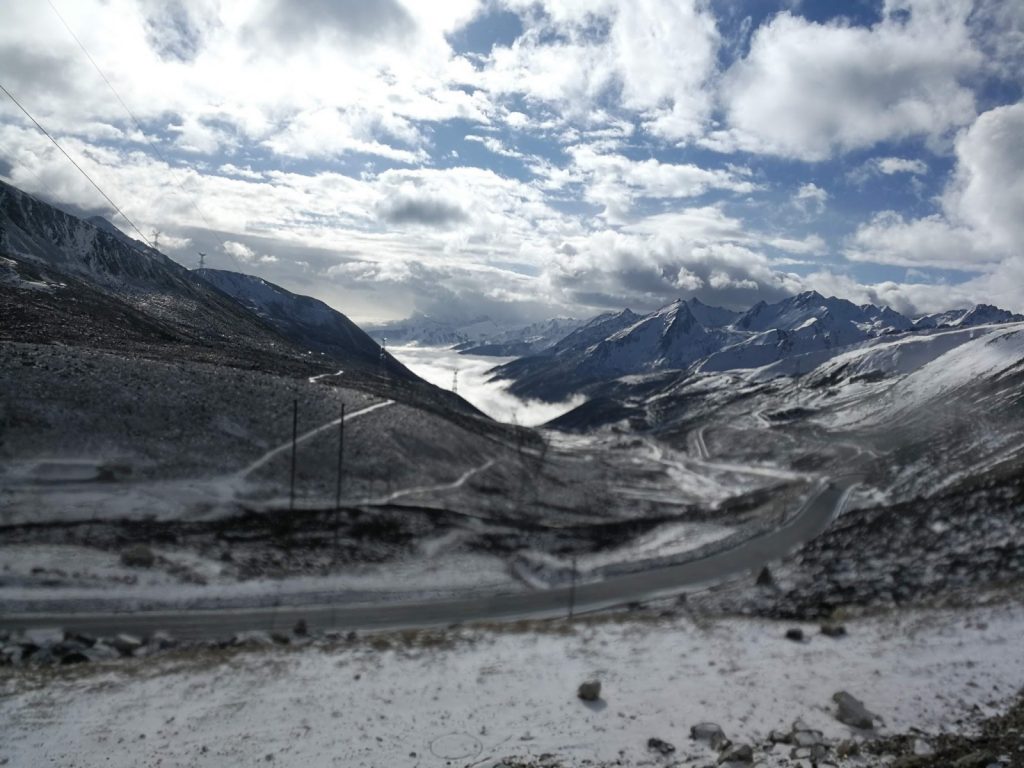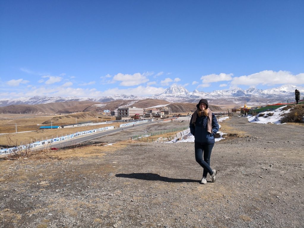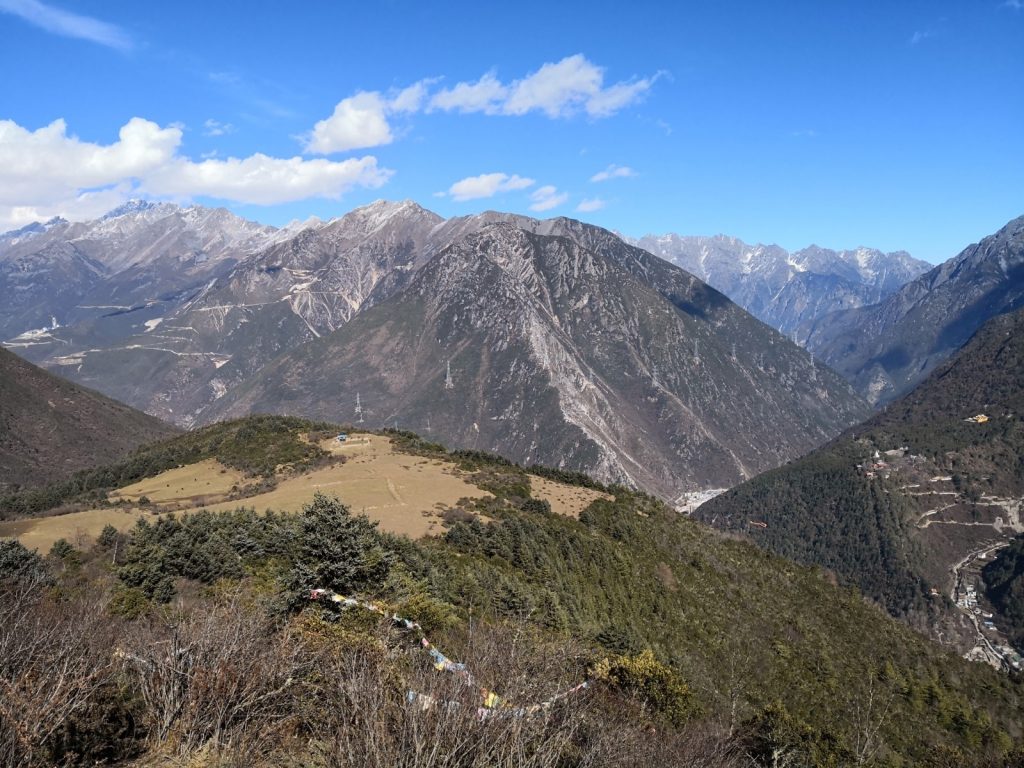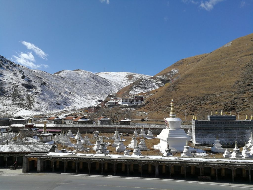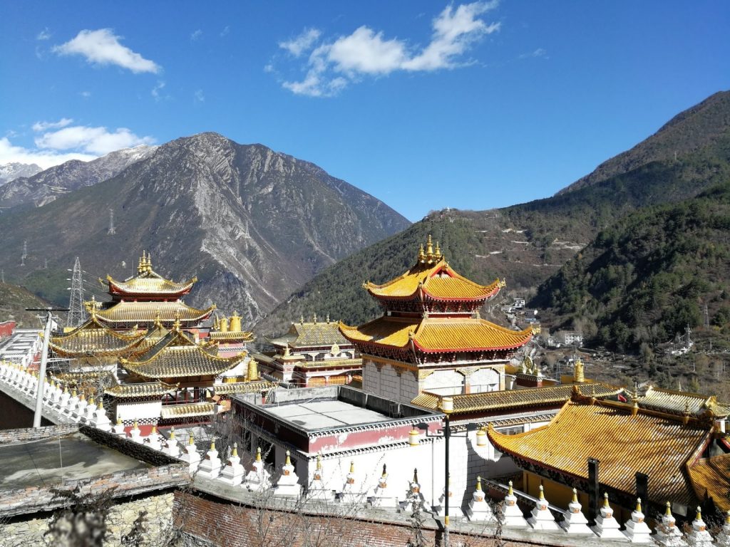 Kangding liegt in der autonomen tibetischen Region Garze. In diesen Bereich darf man als Tourist noch relativ problemlos. Es sind keine special permits notwendig, aber auf dem Weg finden Passkontrollen statt. Im März (der Monat, in dem der Dalai Lama ins Exil geflüchtet ist) wird hier alles dicht gemacht und niemand darf mehr rein. Wir sind aber nun drin. Schön ist es hier. Deutlich deutlich kühler. Erinnert an Russland. Die fette Winterjacke wieder raus. Dafür Berge. Oh, wie schön sind Berge. Eine tolle Aussicht aus der Stadt, die im Tal zwischen mehreren Bergen liegt.
