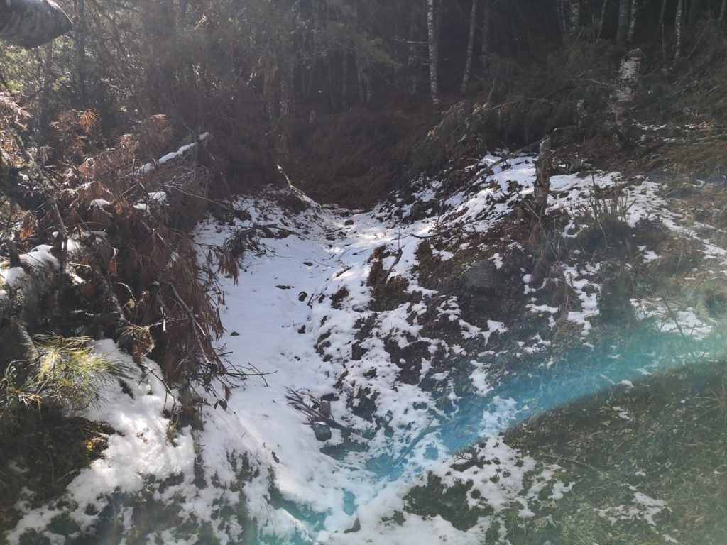 Natürlich wollen wir den Berg hoch. Was eine Tour. Klatschnass. Schuhe durch. Dreckig. Erschöpft. Nach mehreren Stunden nur hoch. So sieht der Weg aus: