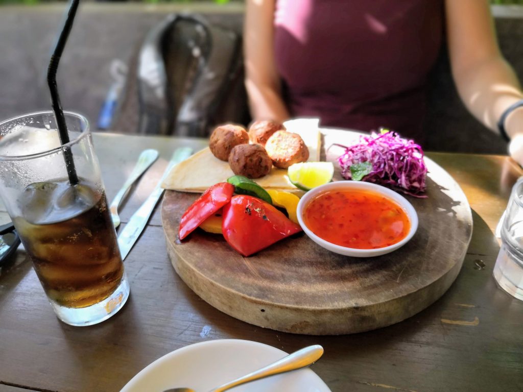 Dann öffnen unzählige kleine Stände am Straßenrand. Sie bieten frische Frucht Shakes an, Pancakes oder auch ganze Mahlzeiten. Alles zu fairen Preisen. Hier genieße ich eine gute Portion Fried Rice. Interessant auch die Stuhlgröße.