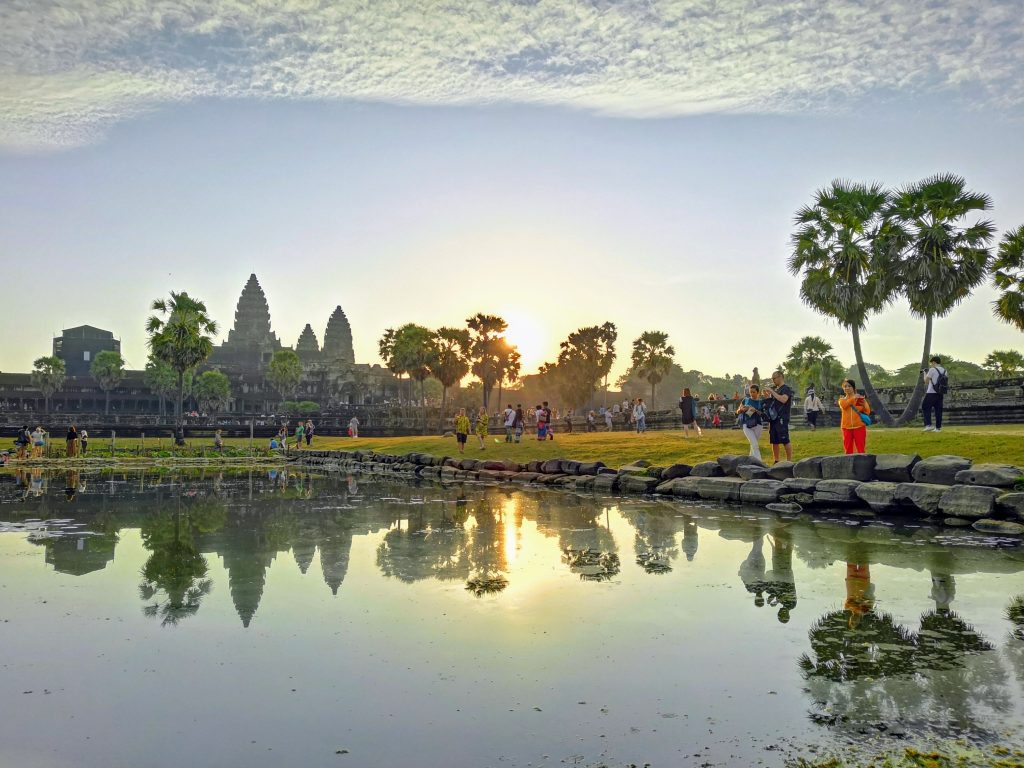 Vor Sonnenaufgang geht es los. Fußmarsch in die Stadt, um einen Roller zu mieten. Gegen 06 Uhr erreichen wir die bekannteste Tempelanlage: Angkor Wat.