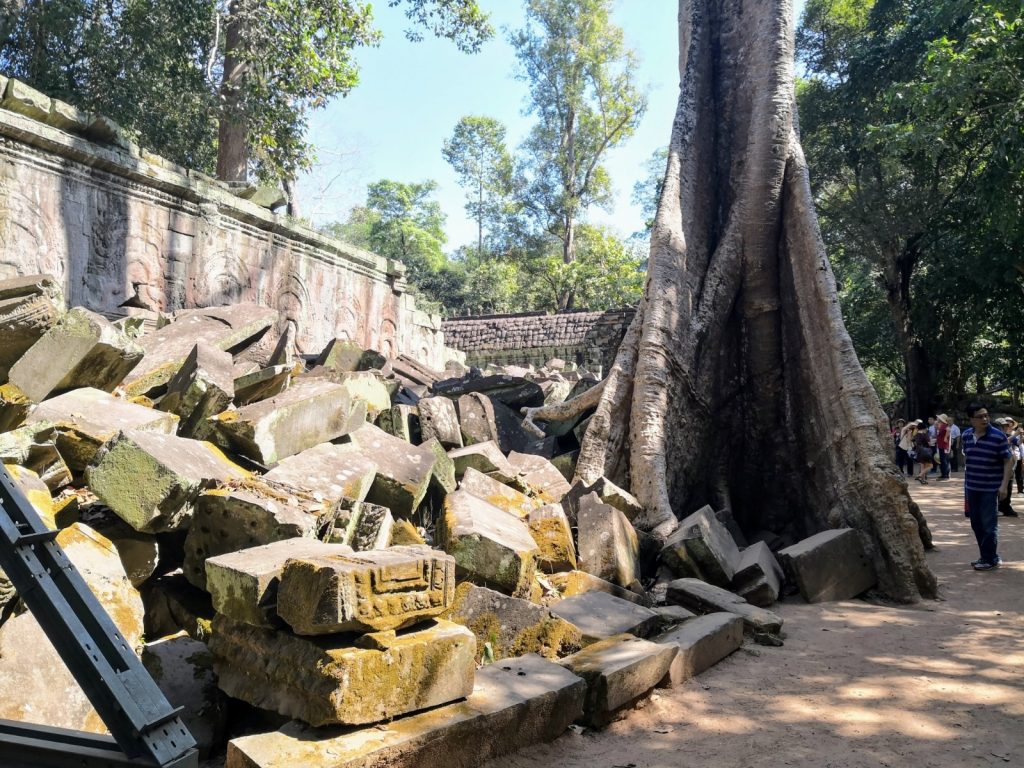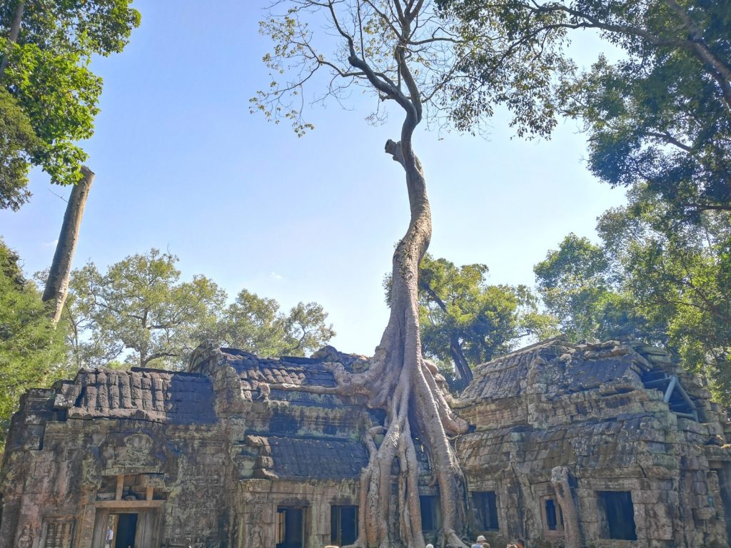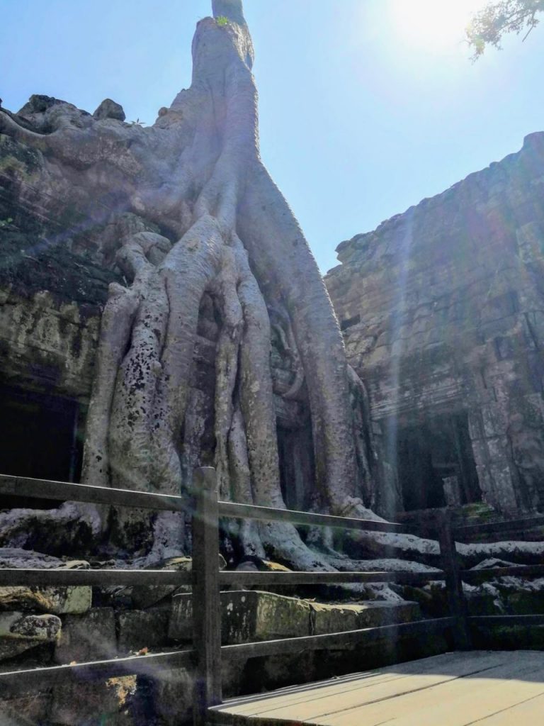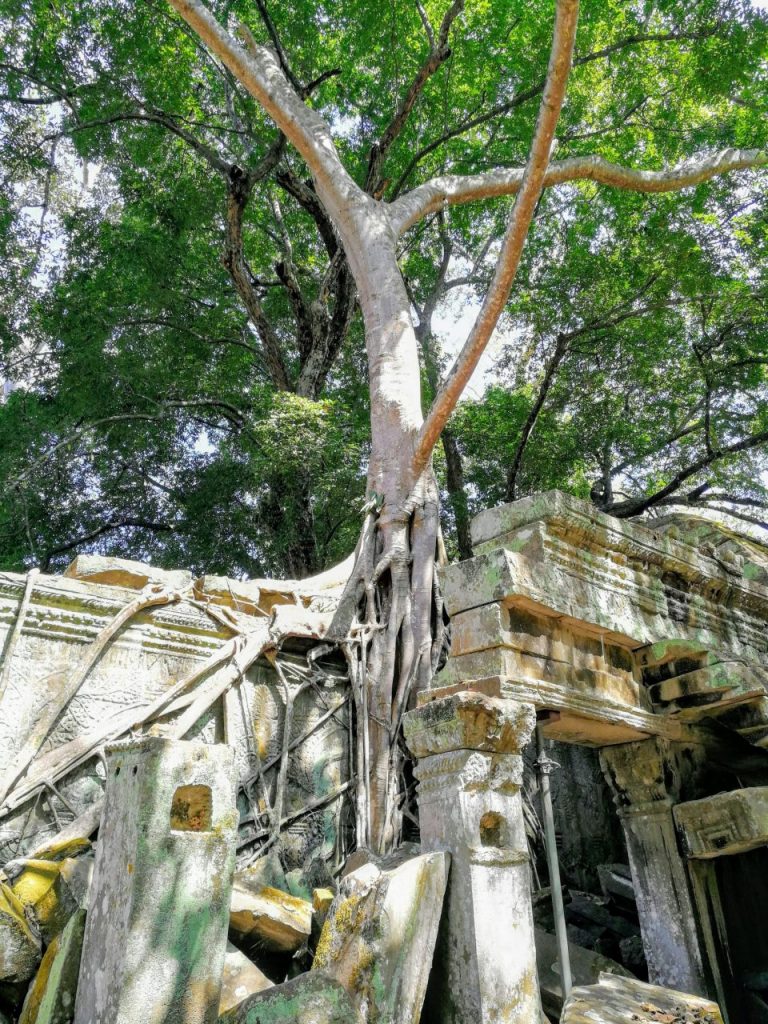 Das Besondere an dieser Tempelanlage ist, dass man sich dazu entschieden hat, diese weitestgehend im ursprünglichen Zustand zu belassen. Eingebettet im Dschungel, ist es ein beeindruckendes Naturschauspiel. Würgefeigen wachsen von oben nach unten, sieht man auf manchen Bildern. Die Natur holt sich alles irgendwann zurück..