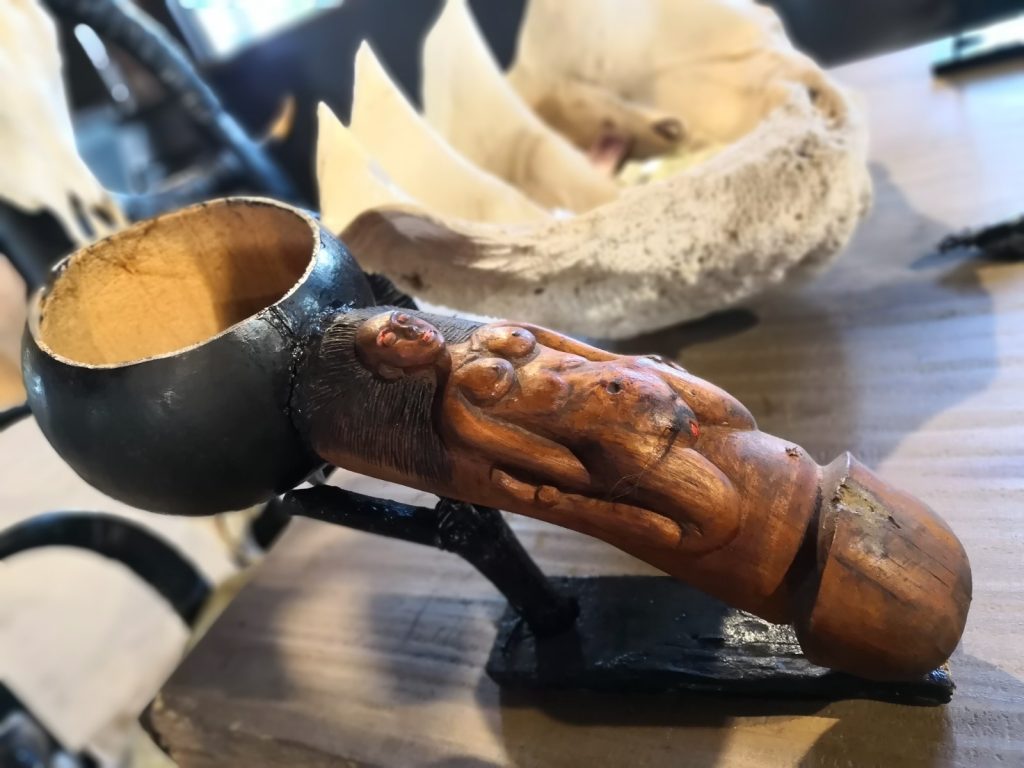 Im Inneren befinden sich viele Objekte. Die makabre und teils obszöne Anordnung weiß wohl zu provozieren.