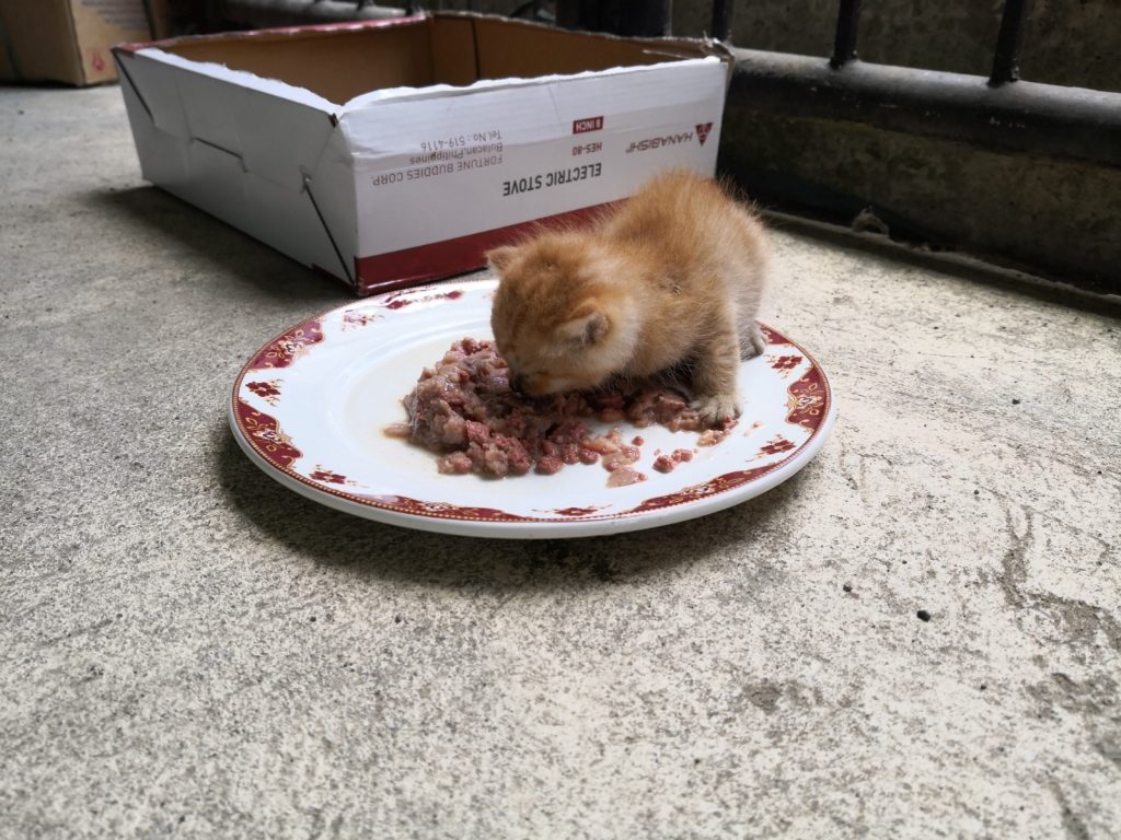 Mit Gartengeräten kloppen wir auf den massiven Stein ein. Vorsichtig, damit wir die kleine Katze nicht treffen. Der Stein ist unbeeindruckt. Wir verzweifeln. Und das Gemauze geht die ganze Zeit weiter.. wie können wir ihr nur helfen..? Stück für Stück entfernen wir kleine Mengen vom Gestein. Und irgendwann – ein Glück, dass junge Kätzchen noch so biegsame Knochen haben – konnten wir sie raus ziehen. So ein tapferes kleines Ding. Hat noch kaum die Augen auf und wackelt zittrig vor sich hin. Wir haben sie aufgepäppelt.