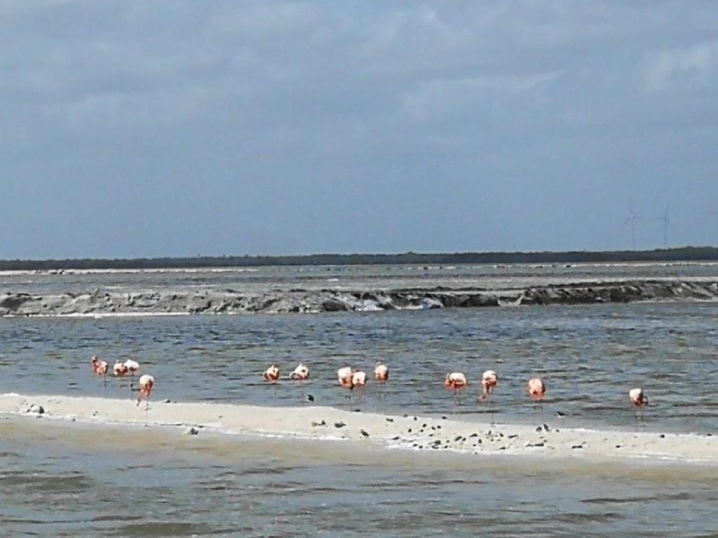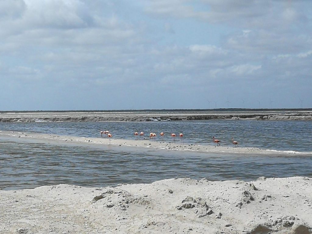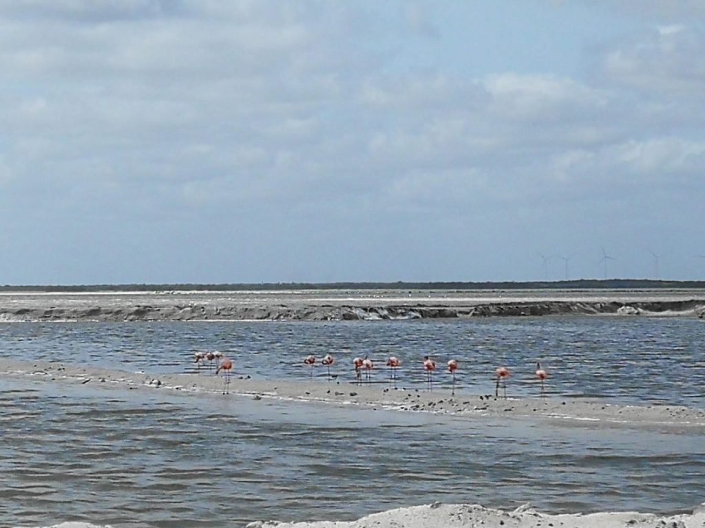 Der nachfolgende Strandabschnitt war unglaublich schön und noch recht ursprünglich. So richtig hat der Tourismus hier oben noch nicht angefangen und das ist auch gut so. Das Wasser hat hier eine ganz besondere und tolle Farbe (habe ich mir sagen lassen..). Es ist so salzig, dass es Salzkörner im Sand gibt. Und Flamingos! 🙂