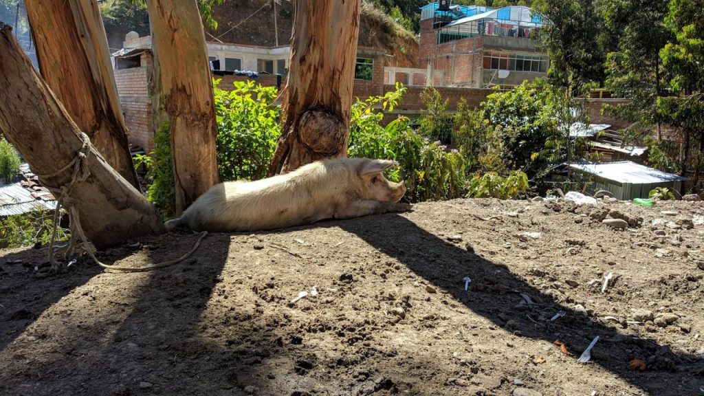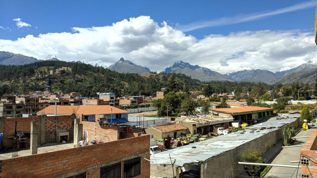 Die Peruaner sind dabei äußerst freundlich und zuvorkommend zu uns. Wir werden angeguckt, aber nicht störend. Man ist interessiert. Viele Menschen grüßen freundlich oder schenken uns ein Lächeln. Huaraz ist bisher wirklich toll! Auch wenn es keine Heizungen gibt und man selbst nachts mit Klamotten schlafen muss. Ein Blick aus unserem Fenster entschädigt das bereits: