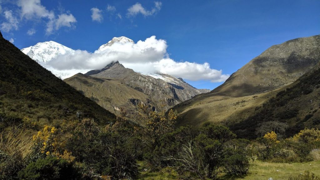 Huaraz liegt etwa eine Tagesfahrt von Lima in Richtung Norden entfernt. Der Bus fährt lange entlang der Hauptstraße in Meernähe. Auf Höhe von Huaraz biegt er dann Richtung Osten in die Berge ab. Von nun an zieht sich der Weg. Eine Serpentine jagt die nächste. Die Aussicht wird graduell immer spektakulärer. Es geht in die Anden – die längste Bergkette der Welt. Hier bei Huaraz befindet sich auch der höchste Berg Perus: Der Huarascan. Er hat eine Höhe von 6.768m. Er liegt im Abschnitt Cordillera Blanca, benannt nach den weißen Gipfeln der Berge dort. Keine Sorge – Bilder folgen gleich. Und sie sind atemberaubend.