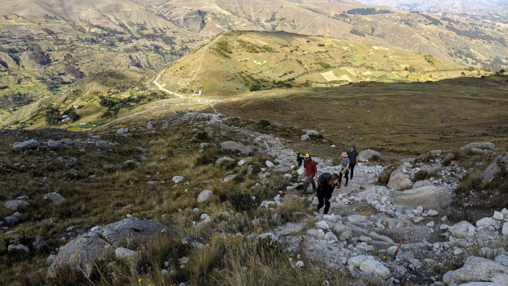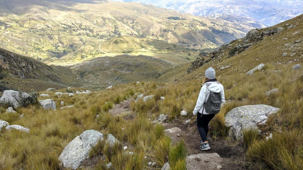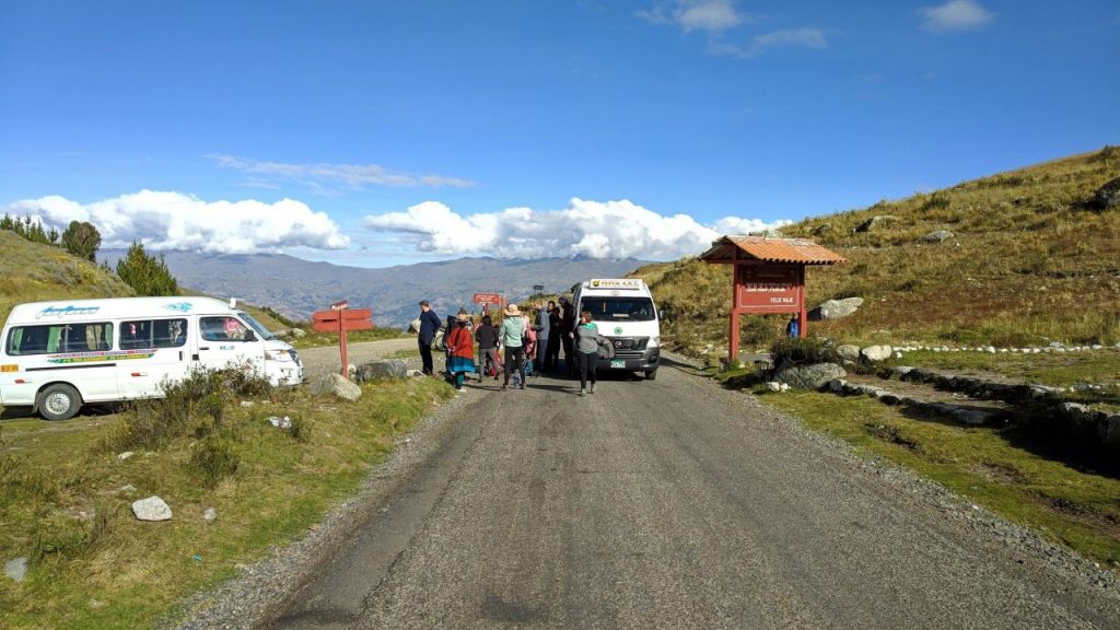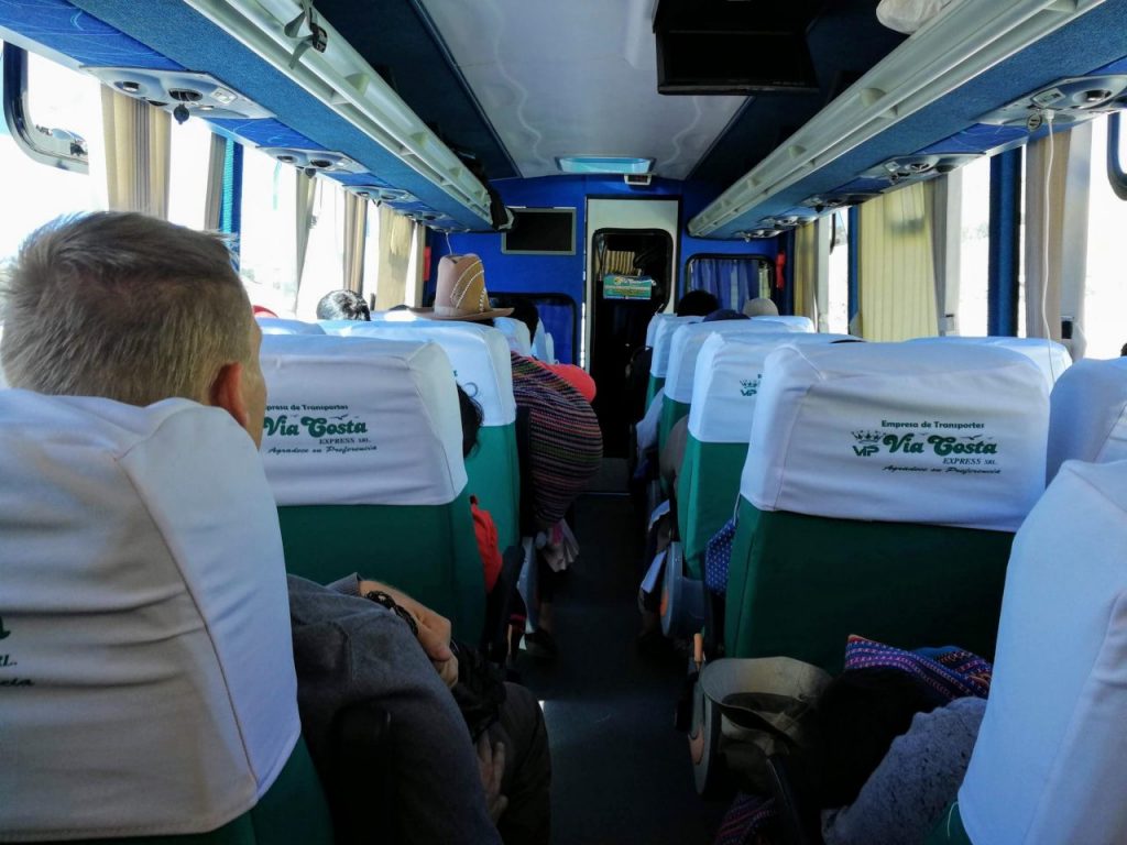 Dieses Mal geht es anders herum. Irgendwie müssen wir auf den nahegelegenen Berg Punta Callan, westlich von Huaraz kommen. Dieser liegt auf einer Höhe von 4.228m. Von da an geht es ca. 8-12km bergab. Das Problem: Es gibt keine Verbindung dorthin. Niemand konnte uns helfen. Im Hostel ist die Empfehlung es mit dem Taxi zu versuchen. Er könnte uns dort für 80€ hinbringen. Tolles Angebot – not. Also machen wir uns so auf den Weg. Mit dem Colectivo in das nächste Dorf vor dem Berg. Dann ist Endstation. Wir stehen am Straßenrand und haben die Hoffnung, dass uns irgendwer mitnimmt. Wir haben tatsächlich Glück: Ein mittelgroßer Bus, der vermutlich noch viel weiter bis ans Meer fährt kommt vorbei. Eine ältere Frau steht am Straßenrand und winkt. Er hält. Wir laufen hin. “Punta Callan?”. “Si”. Also rein. Was für ein Glück. Noch genau zwei Plätze frei.