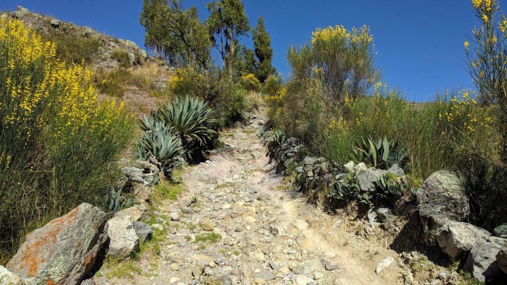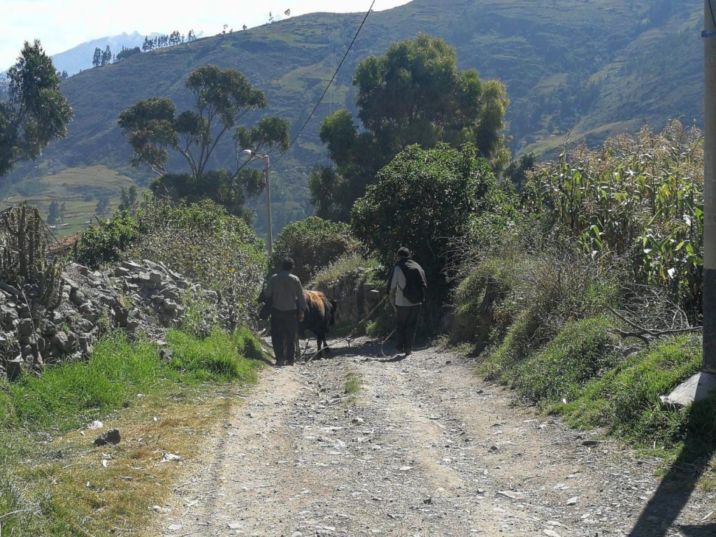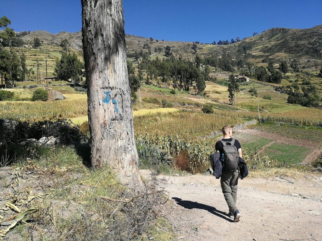 Unser erster Trek. Keine Tour, sondern auf eigene Faust. Wilcacocha gilt als mittelschwieriger Trek, vor allem aber geeignet zur Akklimatisierung und zum Test, ob man an die Höhe gewöhnt ist. Der Startpunkt liegt etwa auf derselben Höhe, auf der auch Huaraz liegt. Von da aus geht es auf 3.745m Höhe, also ein Aufstieg von etwa 700m. Die Anreise ist einfach: Von der Stadt aus fährt ein Colectivo (so heißen die kleinen Minivans hier) direkt zum Beginn des Treks. 20 Minuten später sind wir da. Und dann geht es auch schon los.