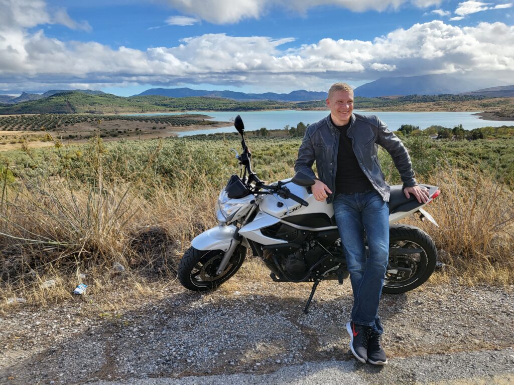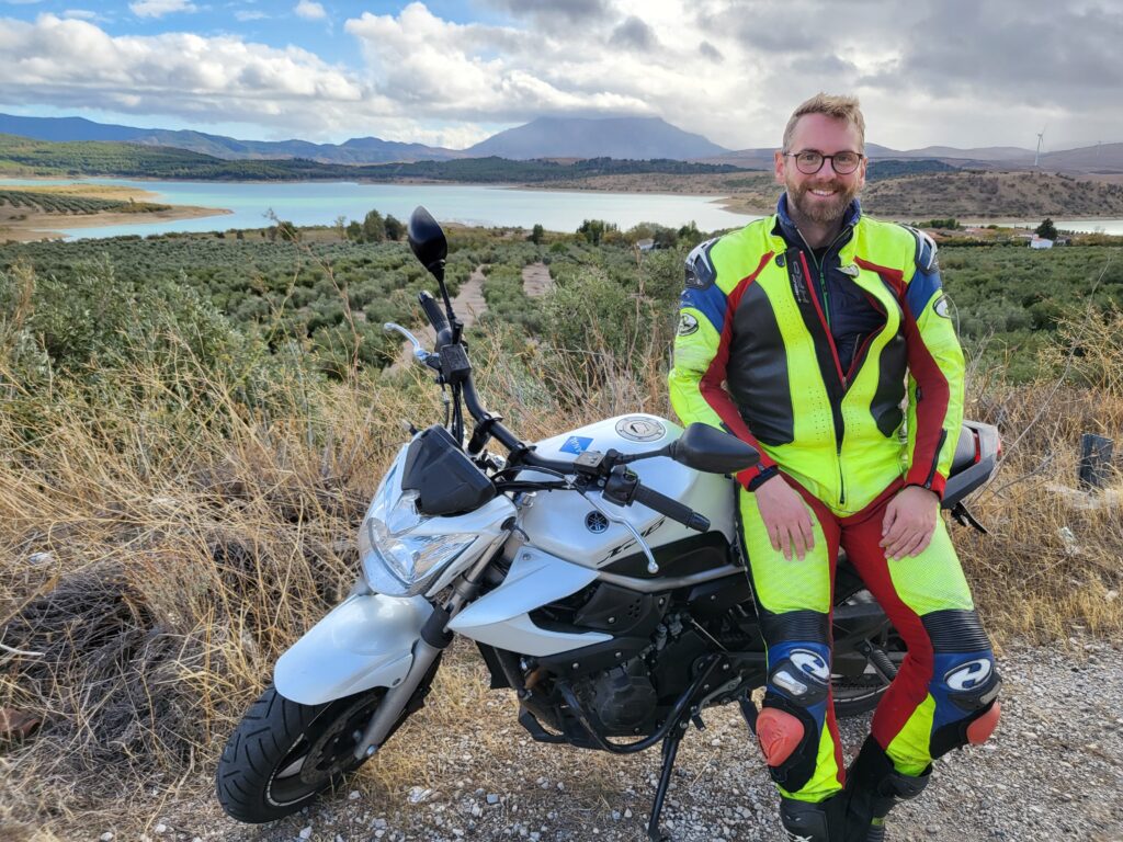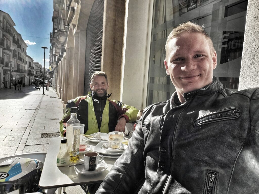 Unser Fortbewegungsmittel der Wahl ist das Motorrad. Martin ist damit den ganzen Weg von Deutschland nach Südspanien gefahren. Was ein Trip!!