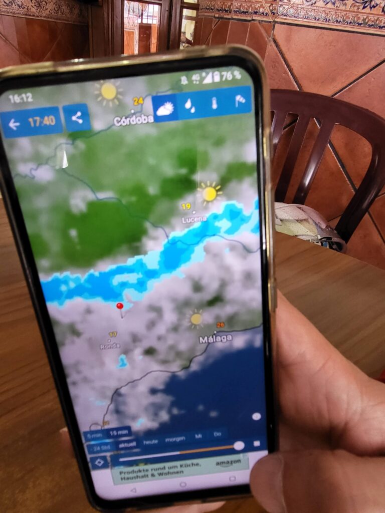 Back on the road. Back on the mopped. Wir machen uns auf den Weg. Tatsächlich haben wir für Ronda zwei Anläufe gebraucht. Warum? Das folgende Bild gibt Aufschluss.